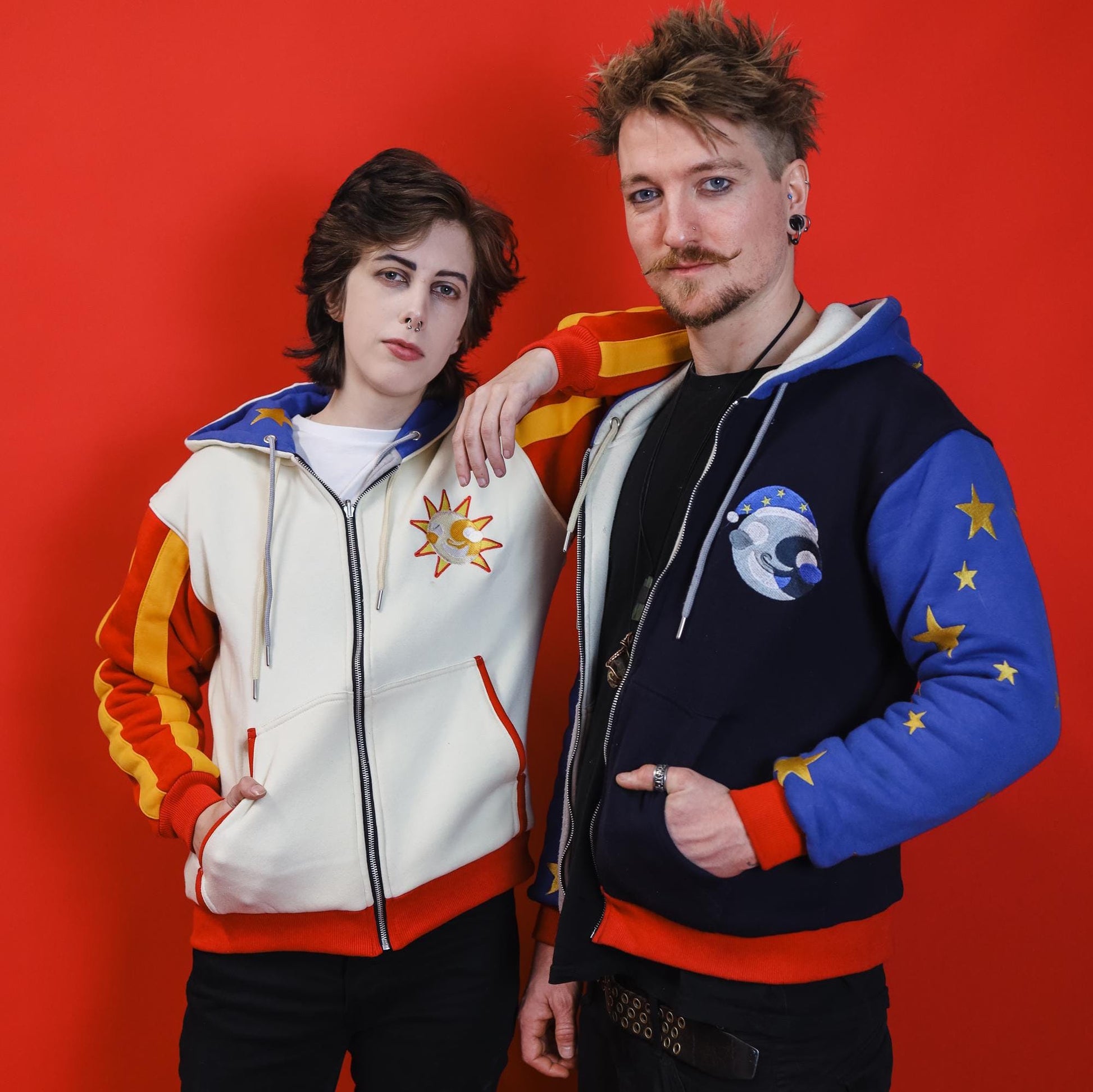 Five Nights at Freddy's Sun / Daycare Attendant & Moon Inspired Reversible Hoodie | Soft Zip Up Hoodie with Embroidery FNAF Security Breach