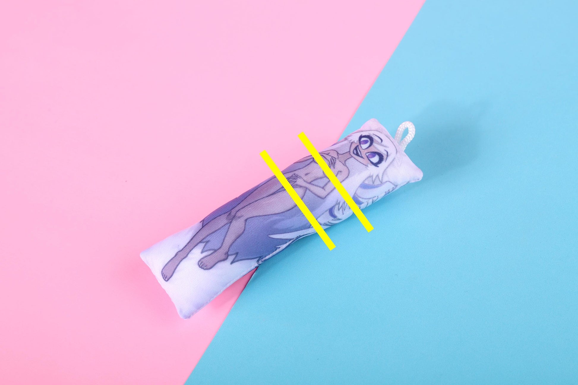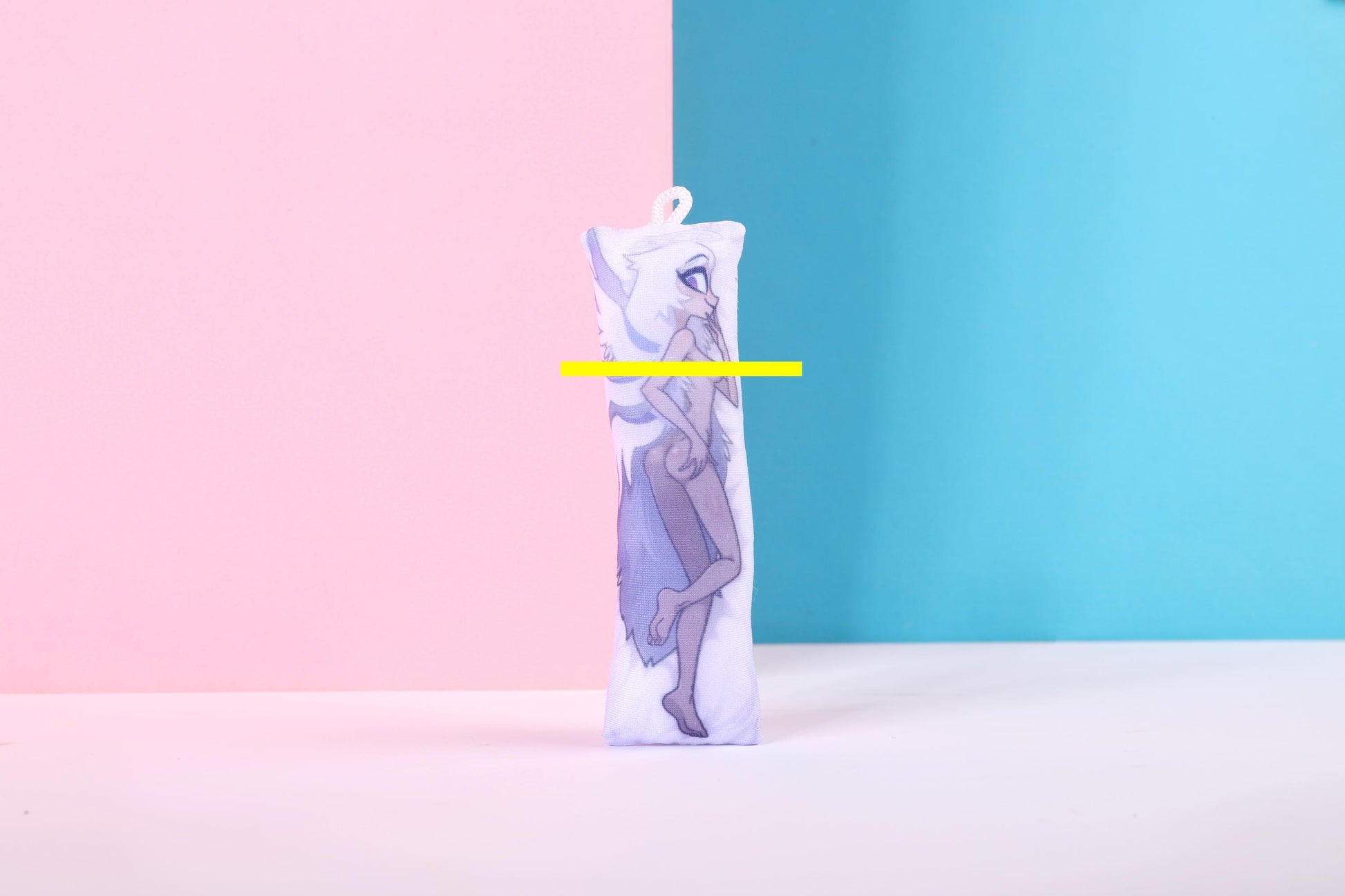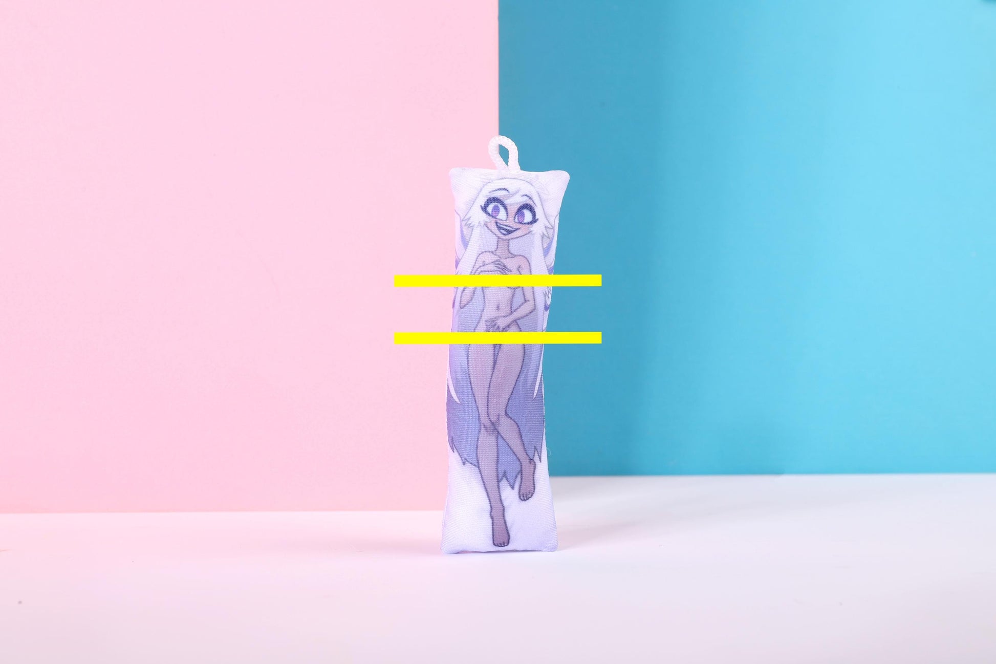 This soft double sided dakimakura keychain features two different mature designs of Emily from Hazbin Hotel