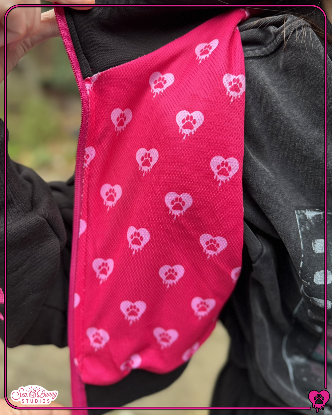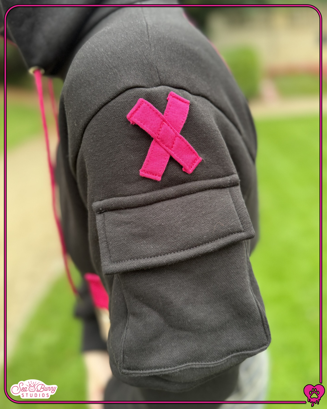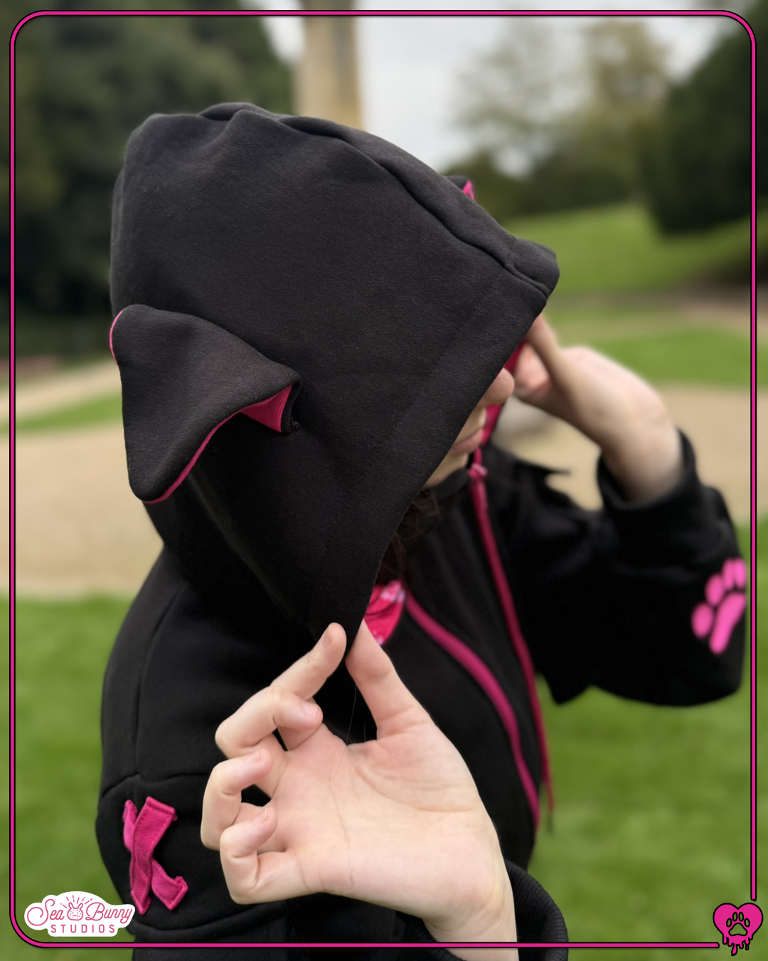 Woof woof! Back at it again with more canine themed attire, Seabunny Studios is here to bring you the all new cropped doggy hoodie! Debuting in a stylish hot pink and black colour way, the hoodie is more of what you love from previous designs, along with a few new extra elements!