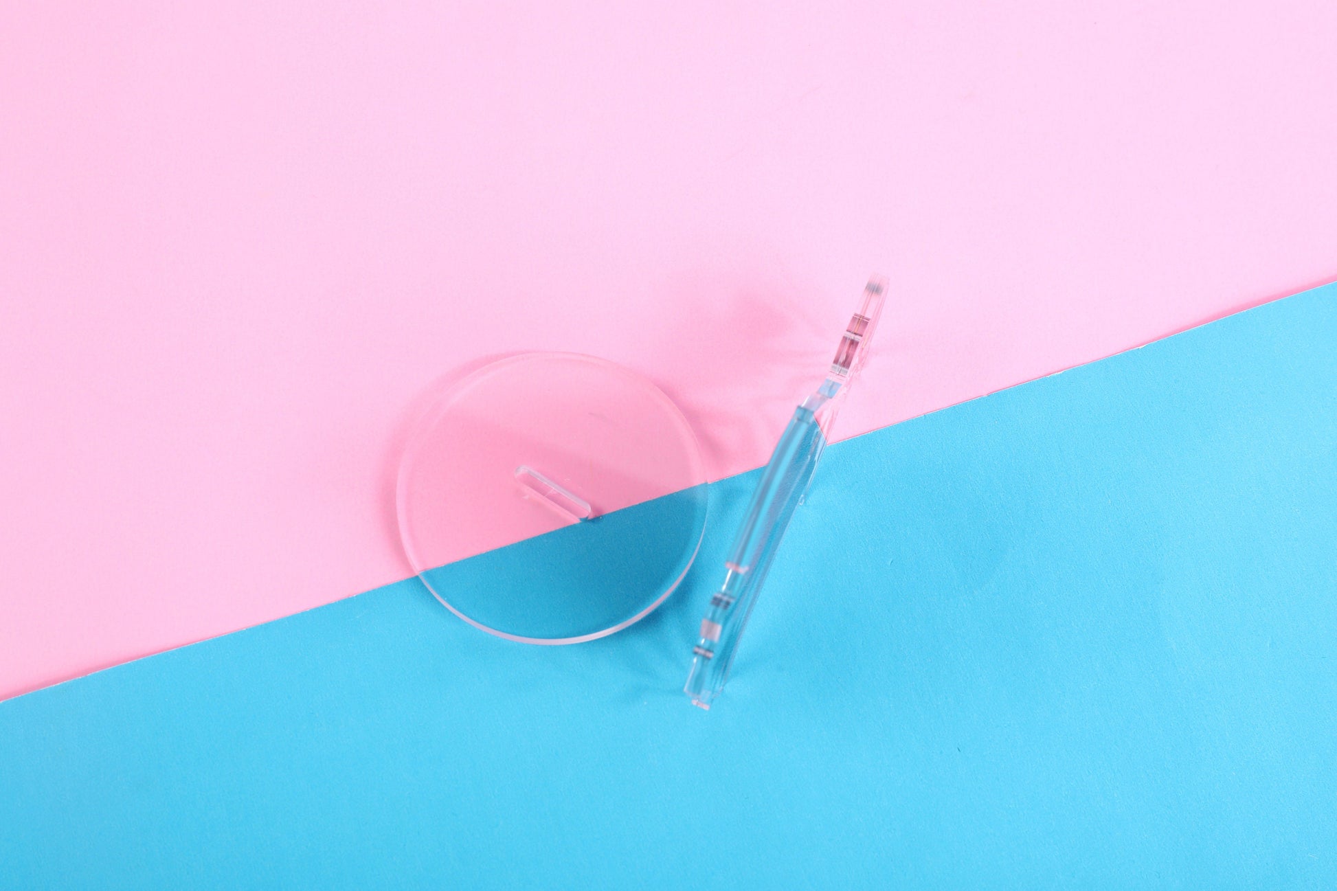 A 4 inch acrylic standee of Stolas from Helluva Boss with double sided printing and a large circular base.